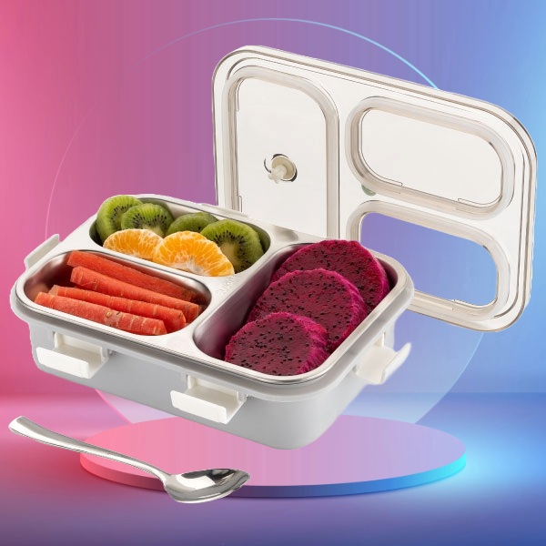Premium quality product with two compartment include spoon. Available in Pink, Blue, Green & Grey.